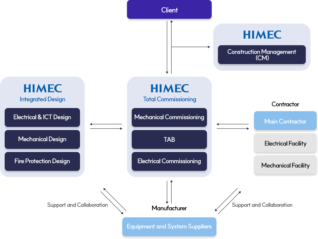 Based on its own commissioning/reliability testing/CM division, HIMEC thoroughly reviews every detail from A to Z to confirm that all equipment and systems are properly installed. Through integrated total commissioning, we enable fast communication and proactive risk management at each stage, while also delivering cost savings and schedule reduction.