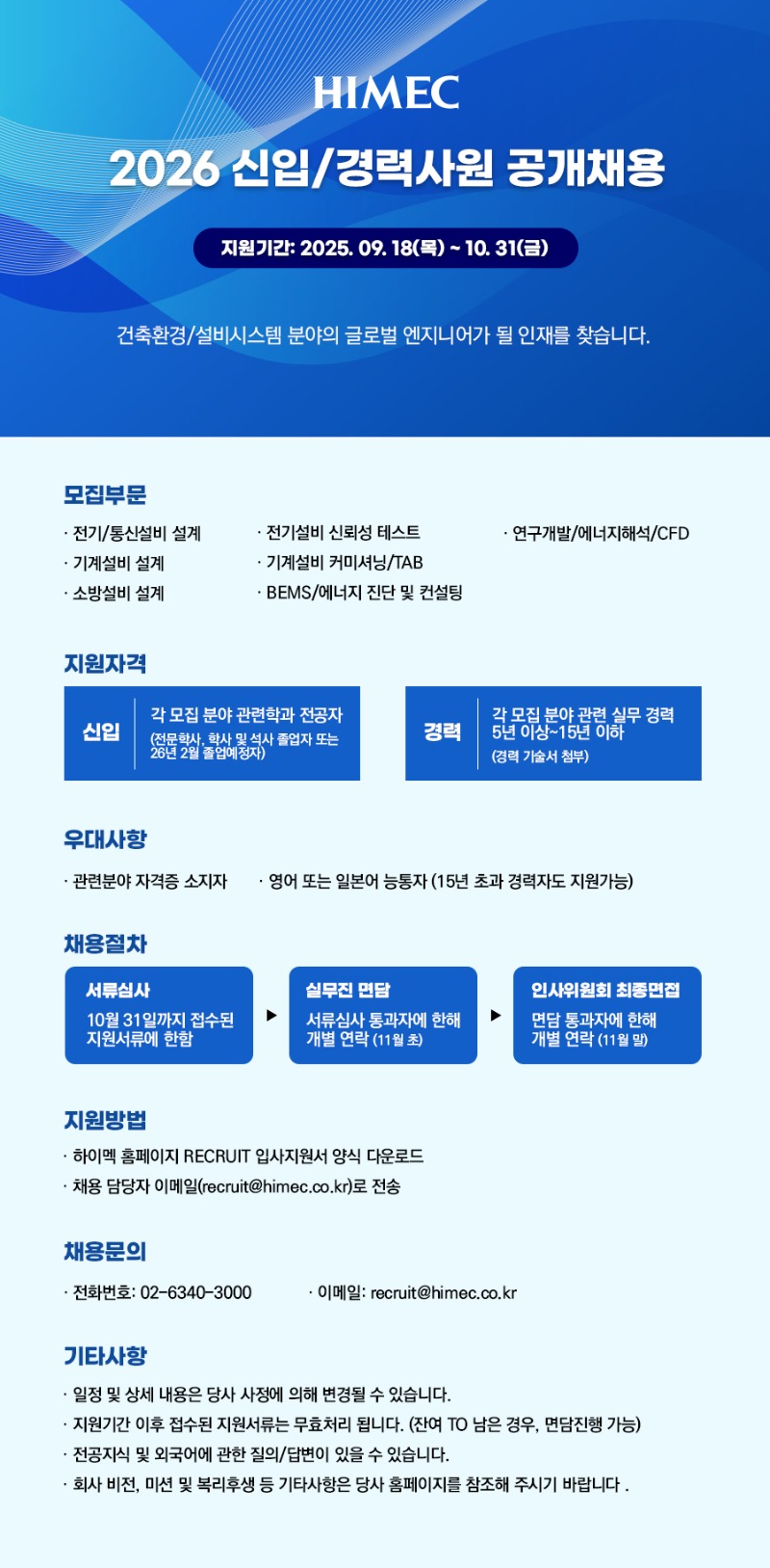 [ 공지] HIMEC 2026 신입/ 경력사원 공개채용